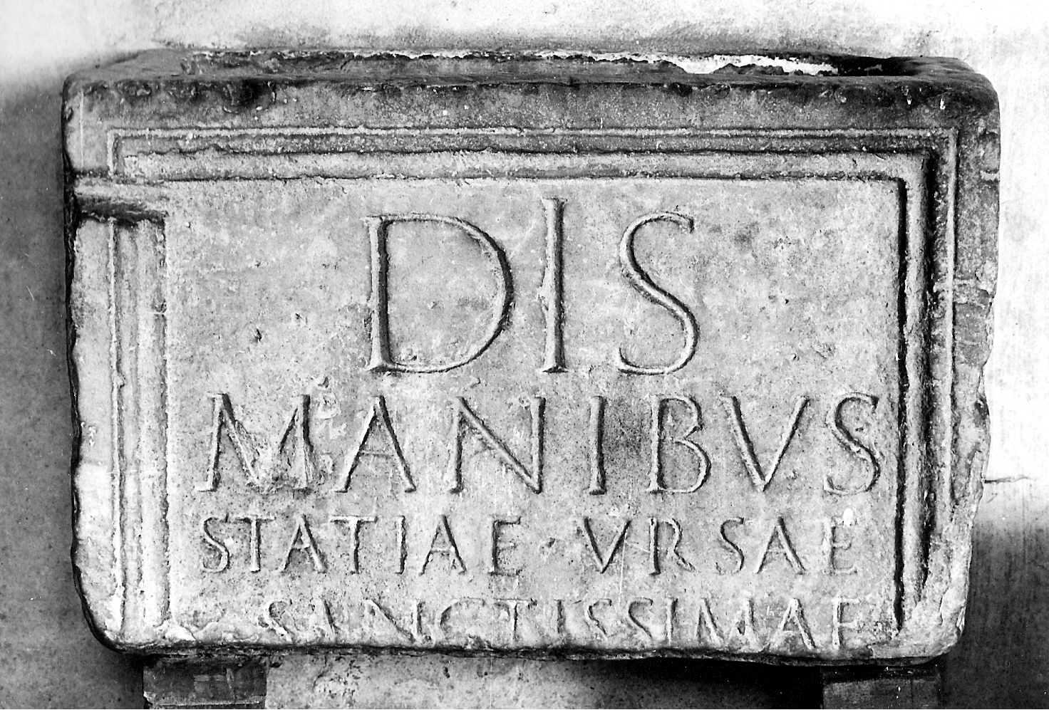 Uno degli elementi più caratteristici delle tombe romane era l’iscrizione dedicatoria. Sulle lapidi, accanto al nome del defunto e a brevi formule commemorative, compariva quasi sempre una sigla: D.M., abbreviazione di Dis Manibus (“ai Mani”).