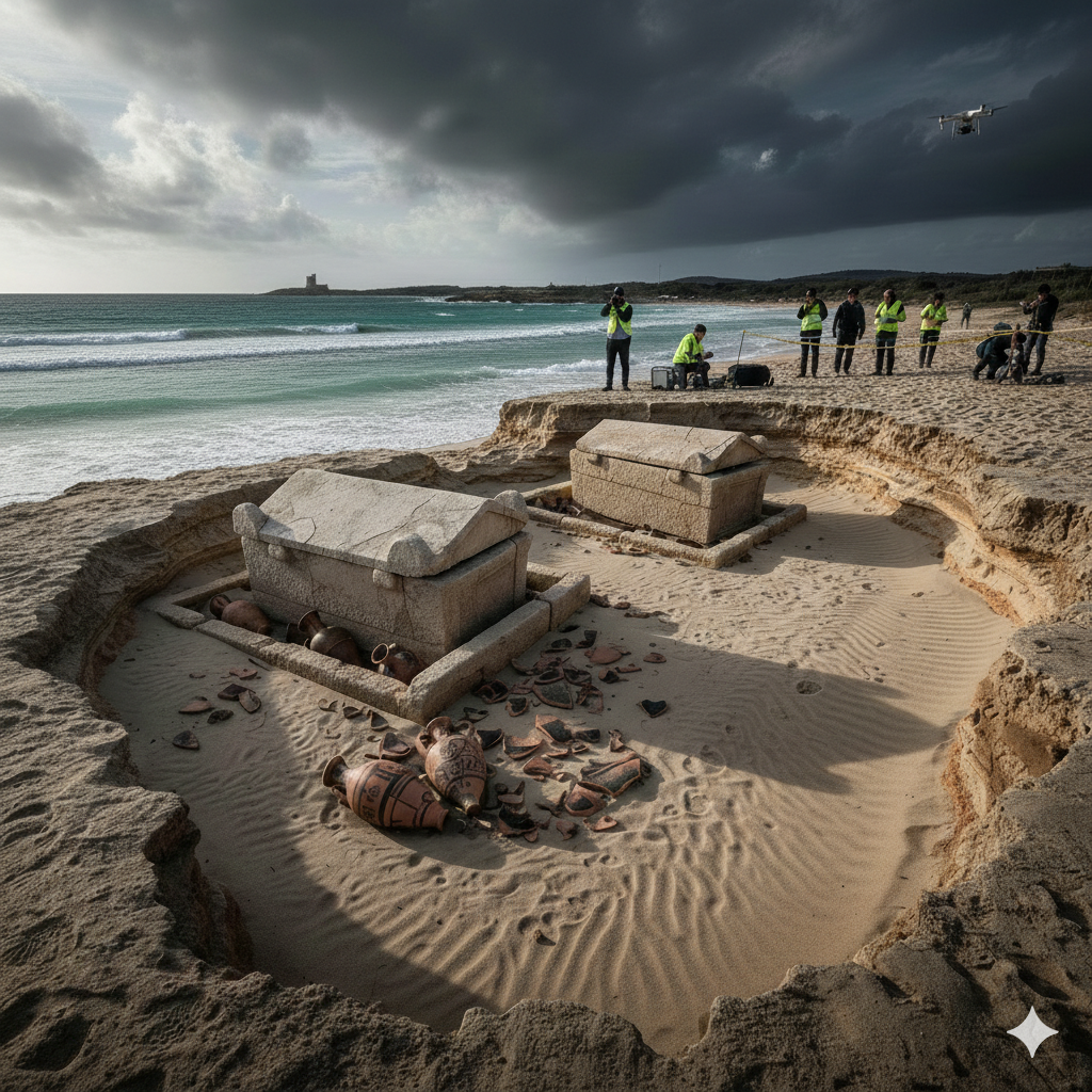 Il fenomeno delle cosiddette mareggiate archeologiche evidenzia un paradosso emblematico del nostro tempo. Da un lato, i cambiamenti climatici e l’aumento della frequenza di eventi estremi rappresentano una seria minaccia per la conservazione del patrimonio costiero; dall’altro, la stessa forza distruttiva del mare può diventare uno strumento inatteso di scoperta, riportando alla luce testimonianze rimaste sepolte per millenni sotto le dune.