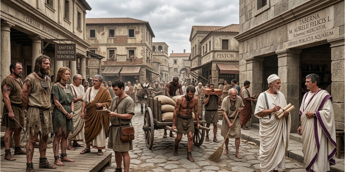 La civiltà romana — con le sue leggi, i suoi monumenti e le sue conquiste — si reggeva su una realtà spesso dimenticata: il lavoro degli schiavi. Senza di loro, i grandi edifici pubblici, le ville dei ricchi, i campi coltivati e persino l’amministrazione dello Stato non avrebbero potuto funzionare.